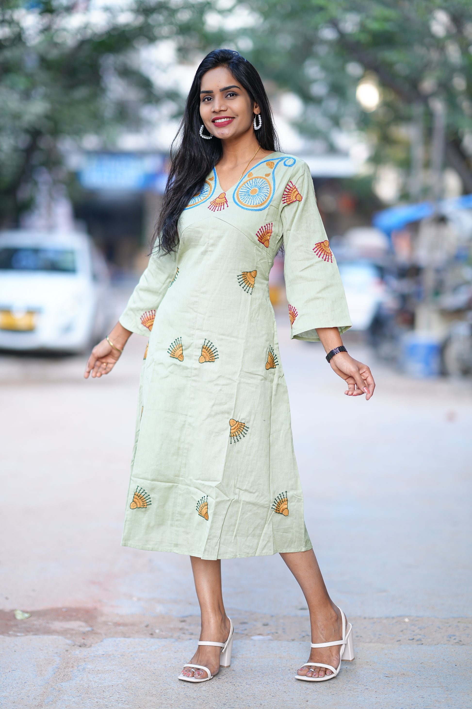 Elevate your evening wardrobe with this sophisticated party wear maxi, showcasing meticulous thread embroidery that spans the entire garment. Each stitch is expertly crafted to create intricate patterns that catch light beautifully, making this piece an ideal choice for weddings, celebrations, and formal occasions. The flowing maxi silhouette offers graceful movement and timeless elegance, while the detailed embroidery work demonstrates superior craftsmanship. Perfect for those who appreciate refined artistry and traditional embellishment techniques combined with contemporary styling.