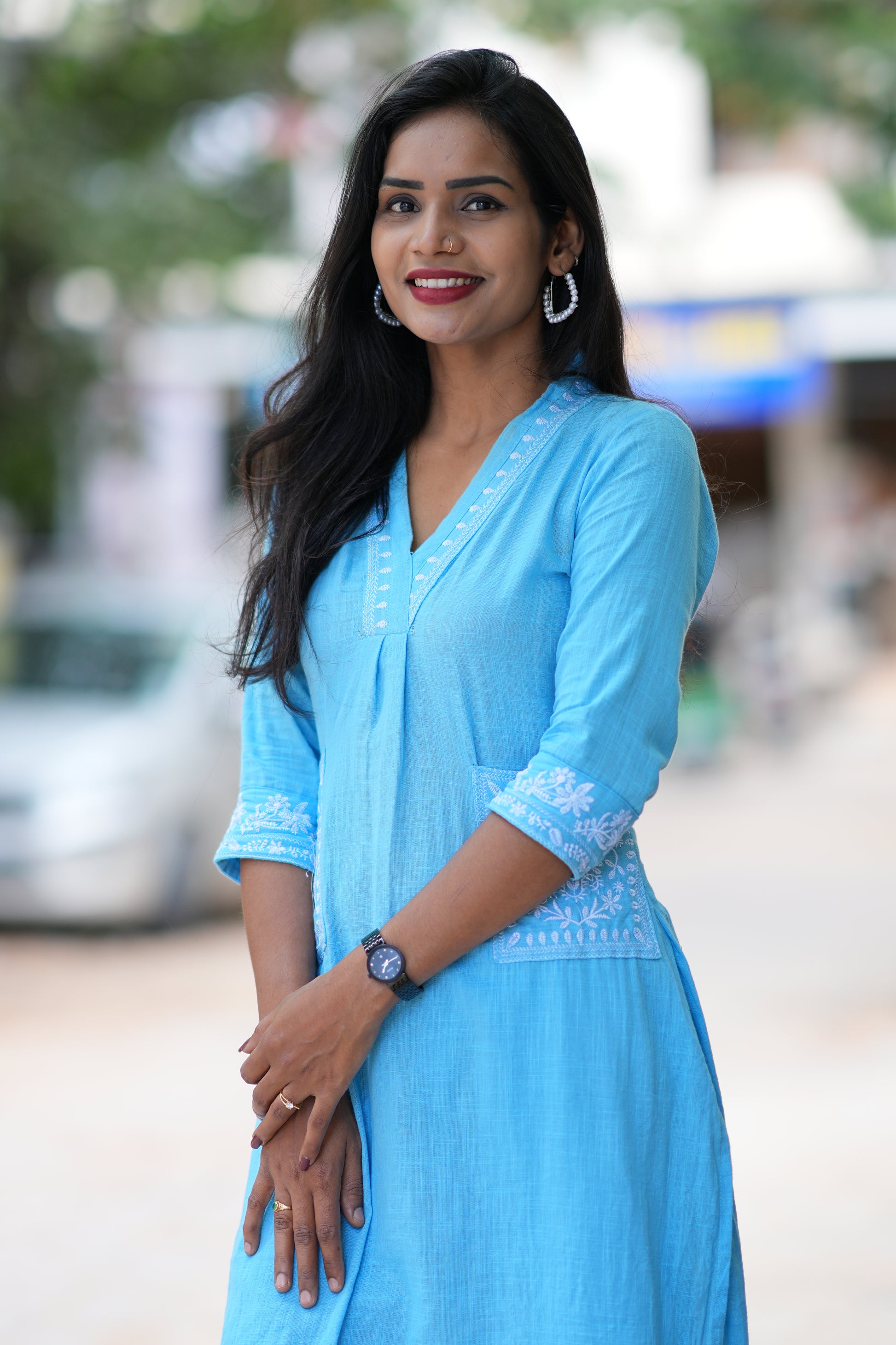 Sky Blue Color Cordset With Dual Pockets