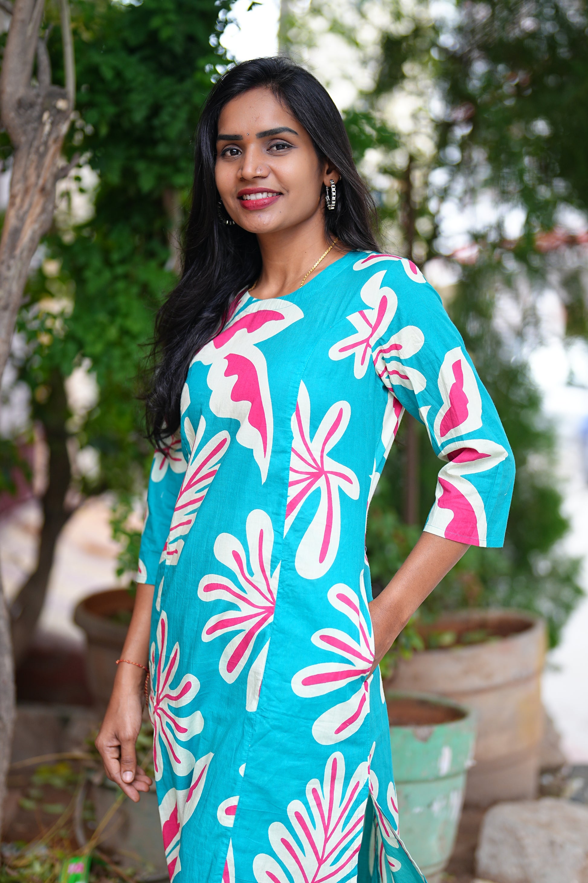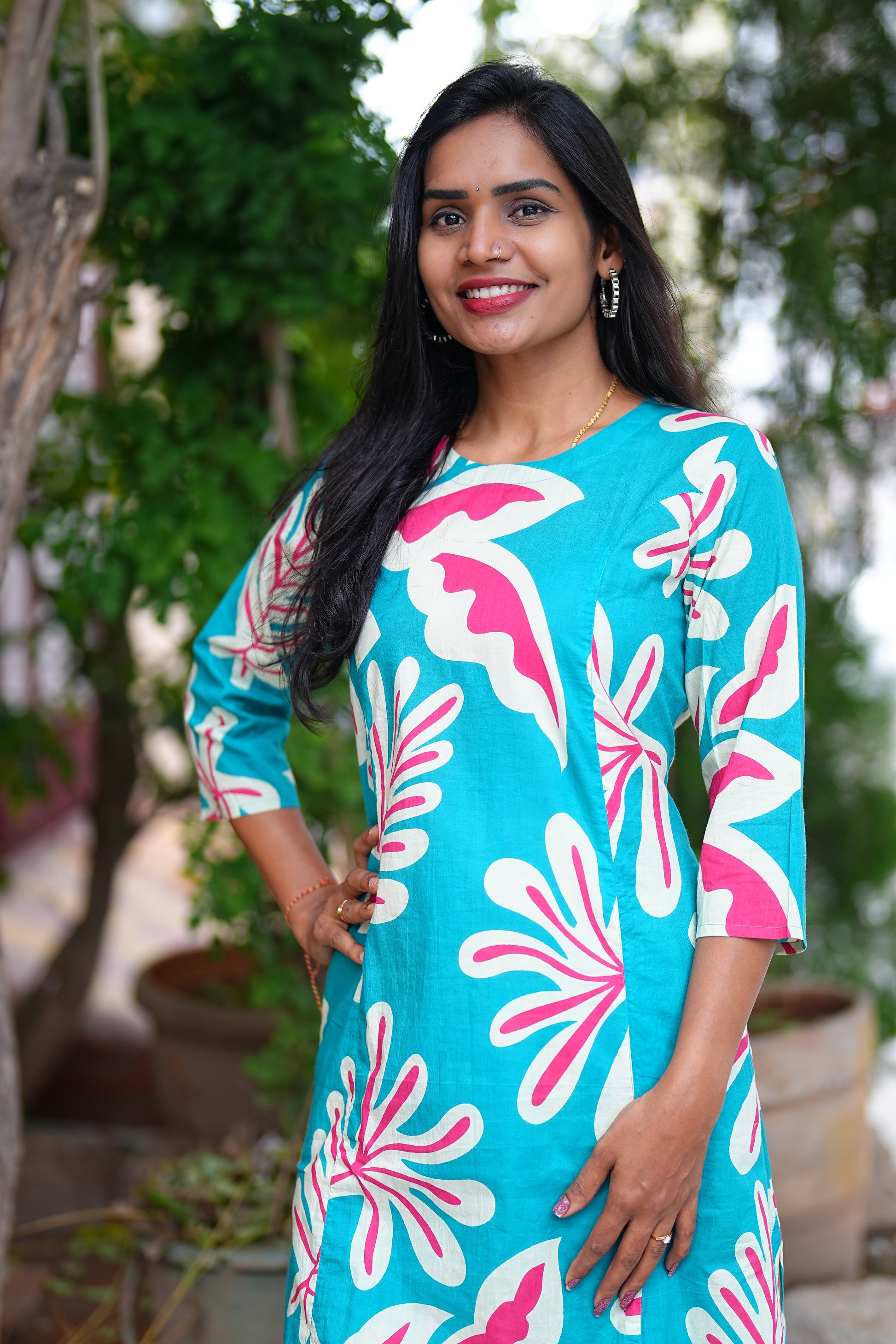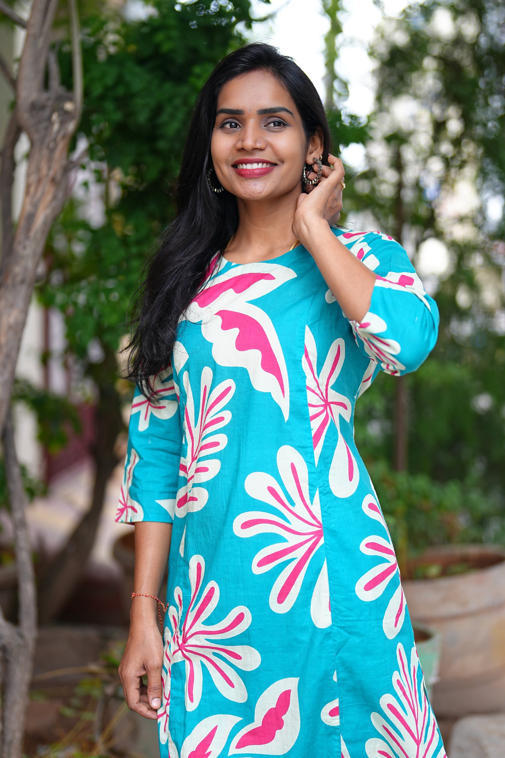This Teal Green Jaipur Cotton Cord Set features a delicate flower design, showcasing traditional craftsmanship with breathable, lightweight cotton fabric. Ideal for adding a touch of elegance and comfort to your attire, this cord set combines vibrant color with artisanal detail, making it a refined choice for both casual and festive occasions.