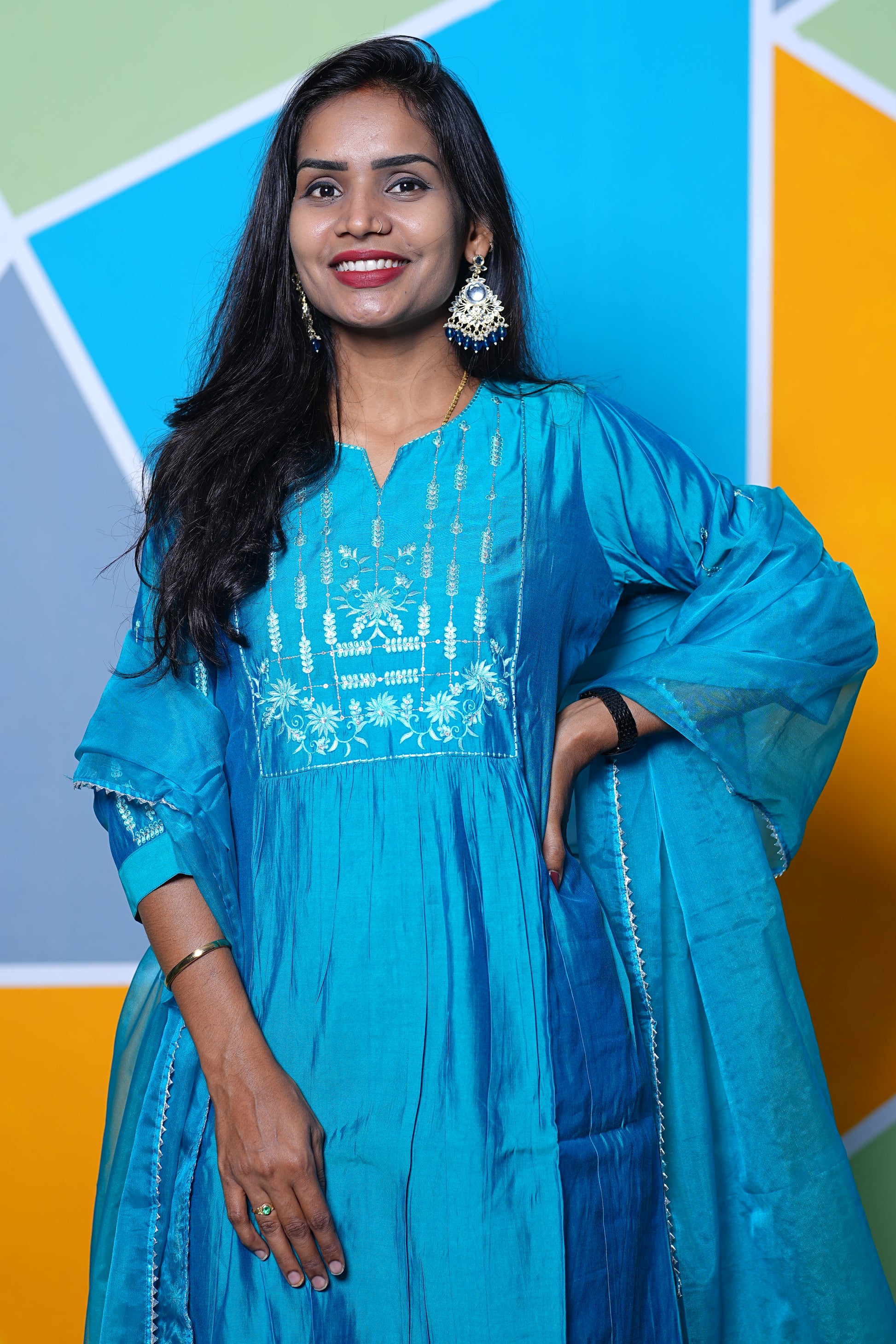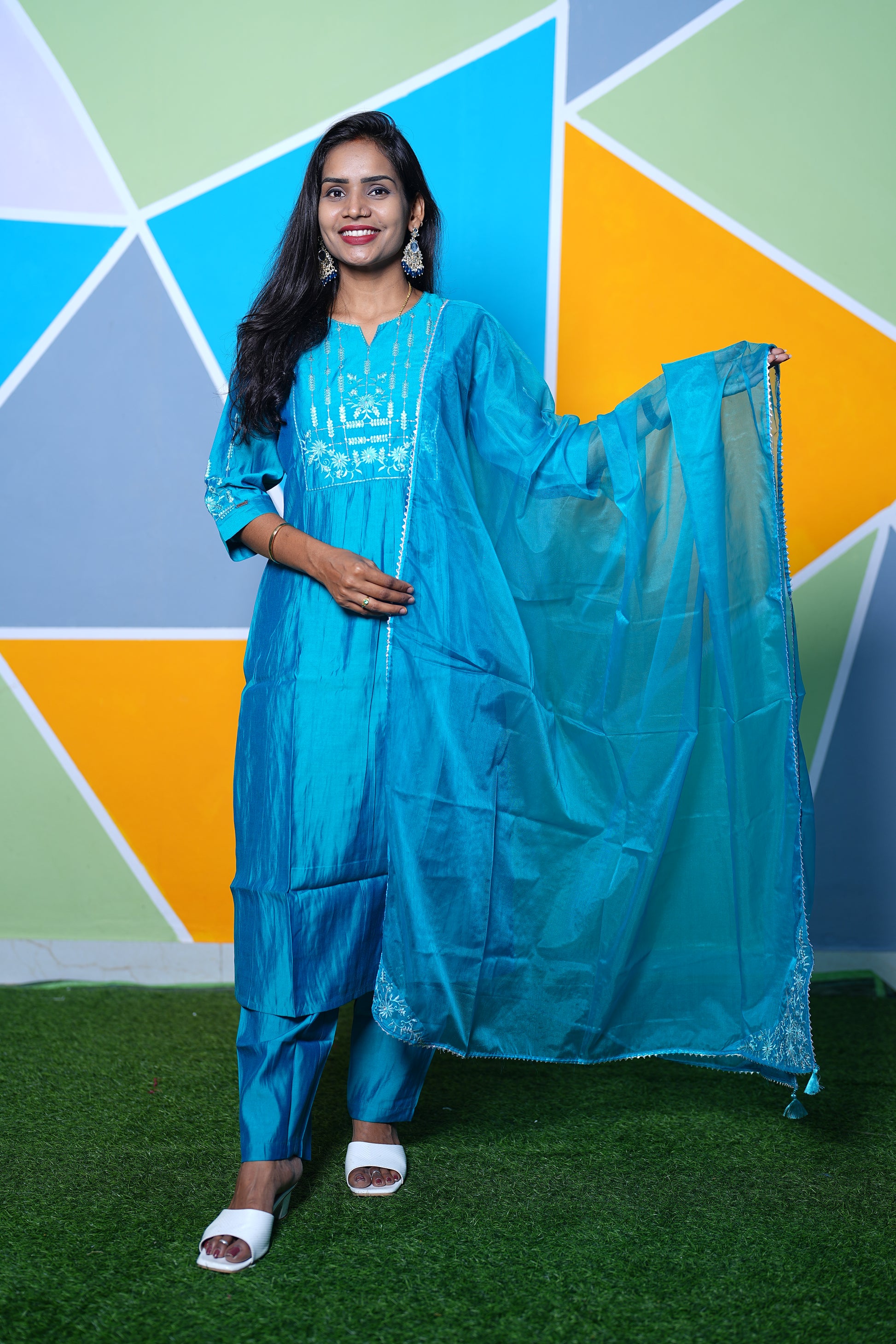 Teal Green Mul chander Festive Wear 3 Piece Set
